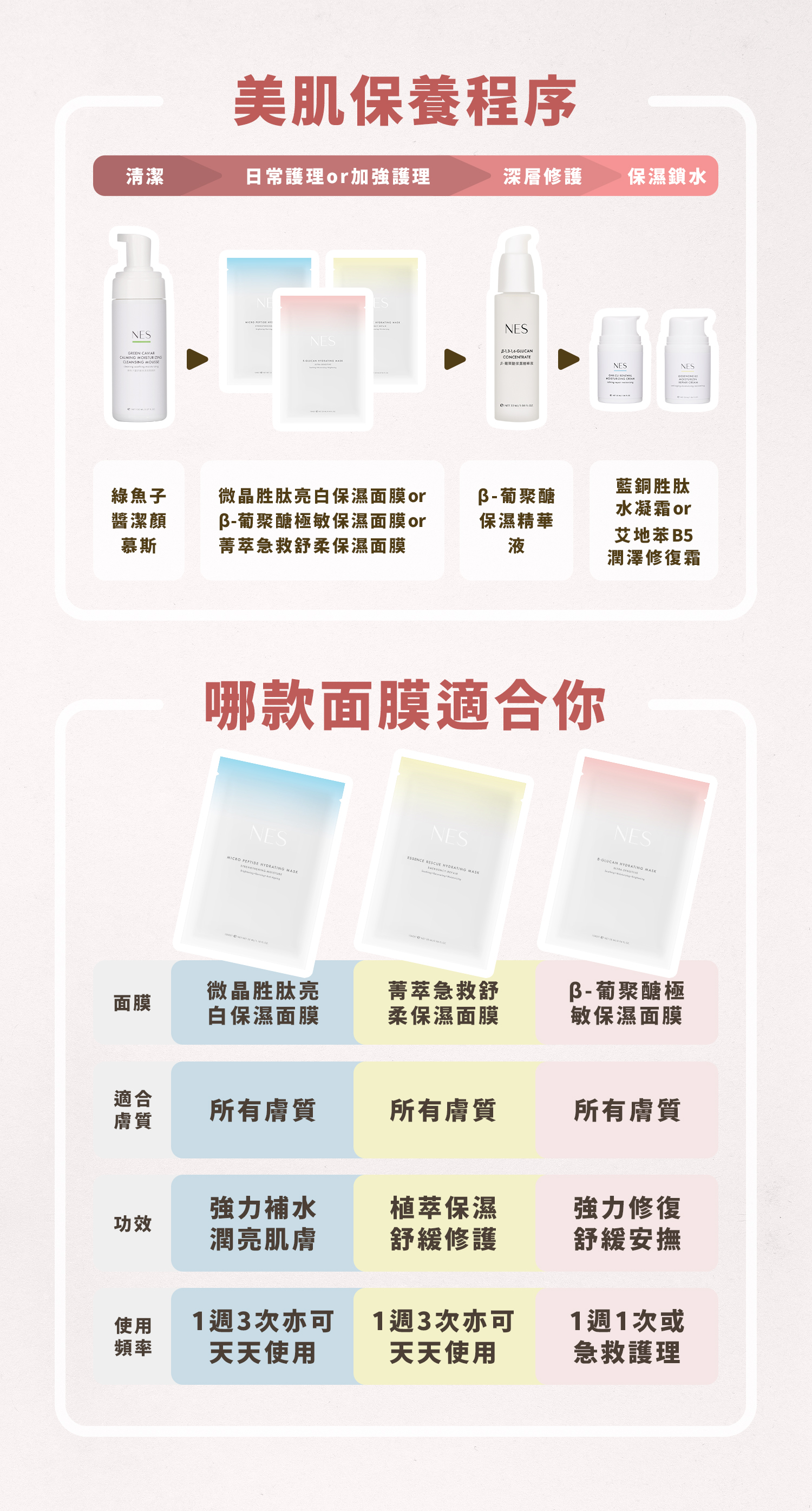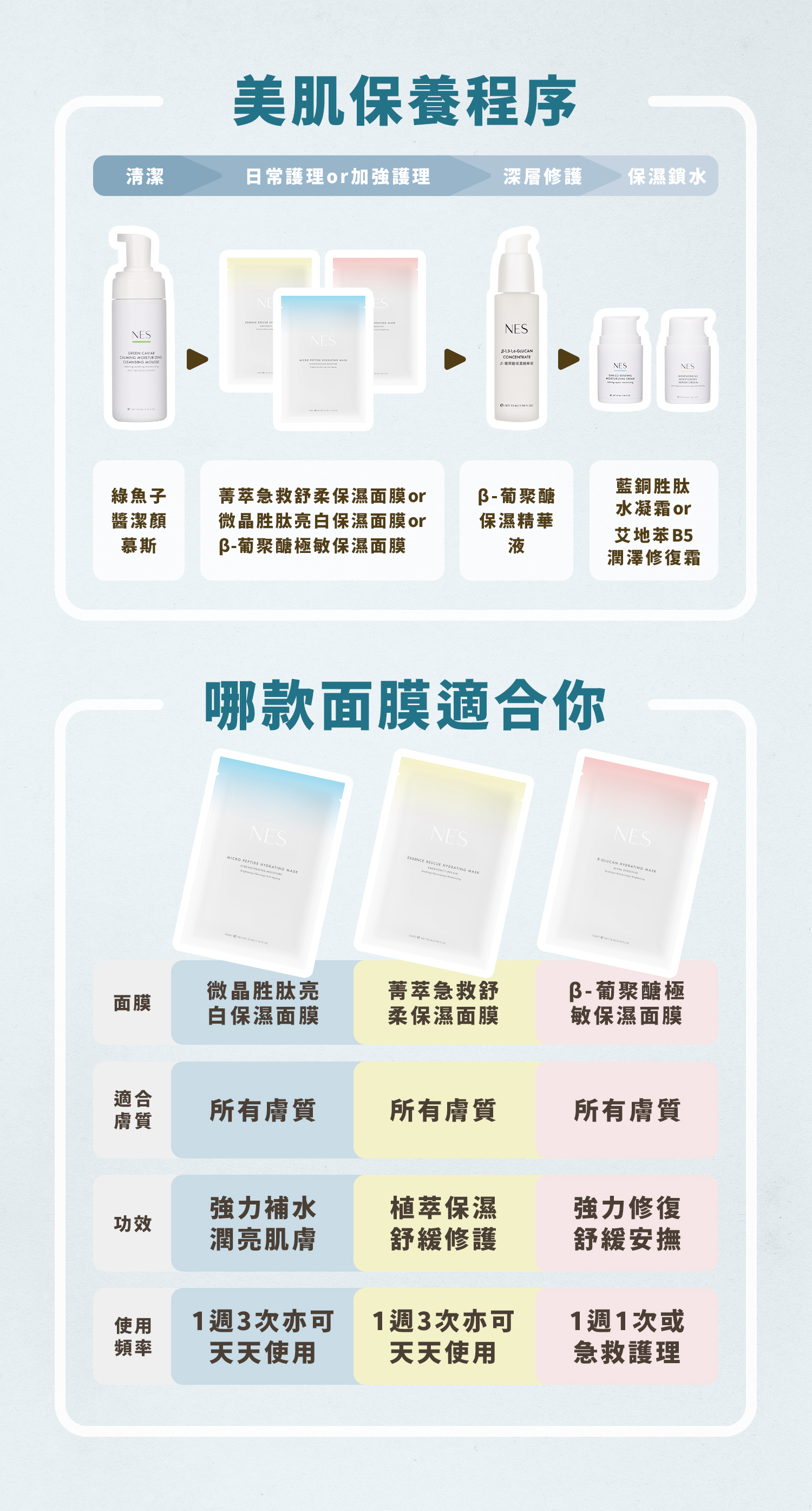 ☑️微晶胜肽面膜採用來自法國Sederma原廠的五胜肽為基底主成分,可飽滿(彈力)肌膚、維持水分。