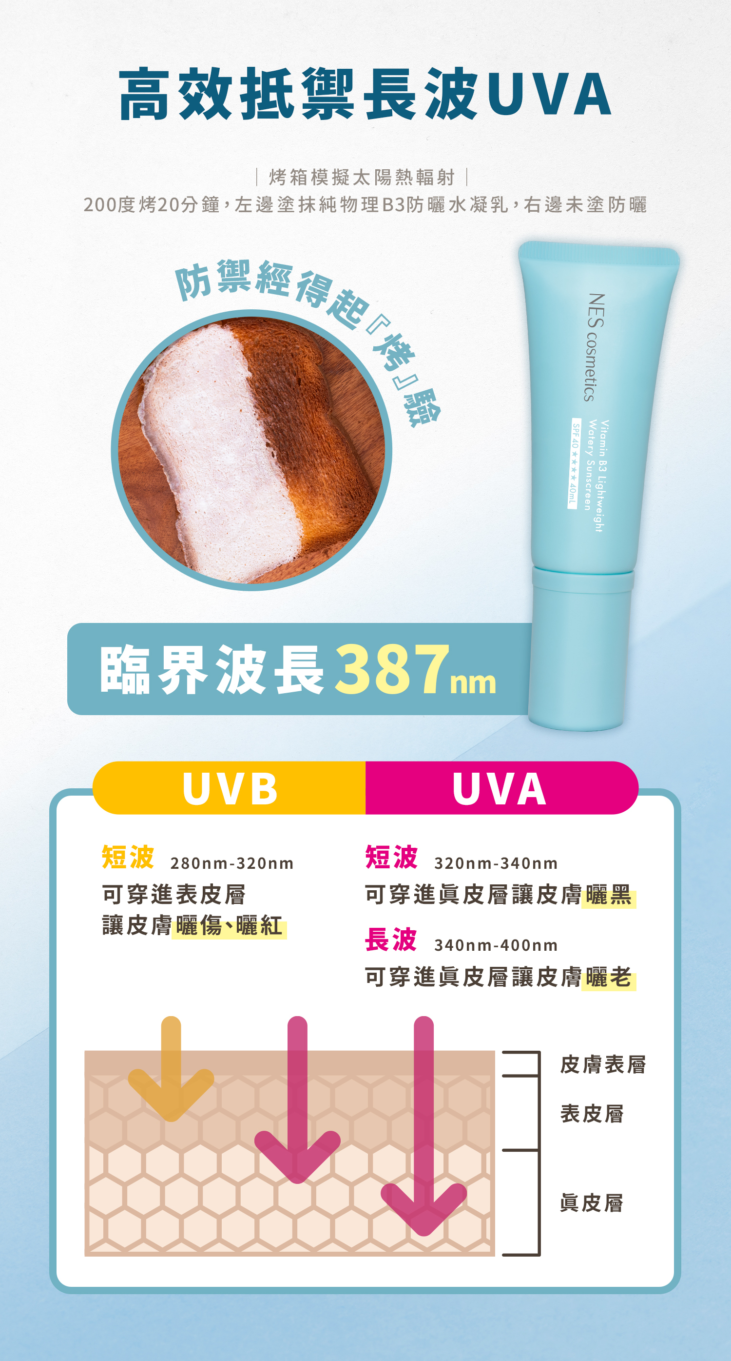 ✔️有效抵禦長達387波長的UVA / UVB傷害😎