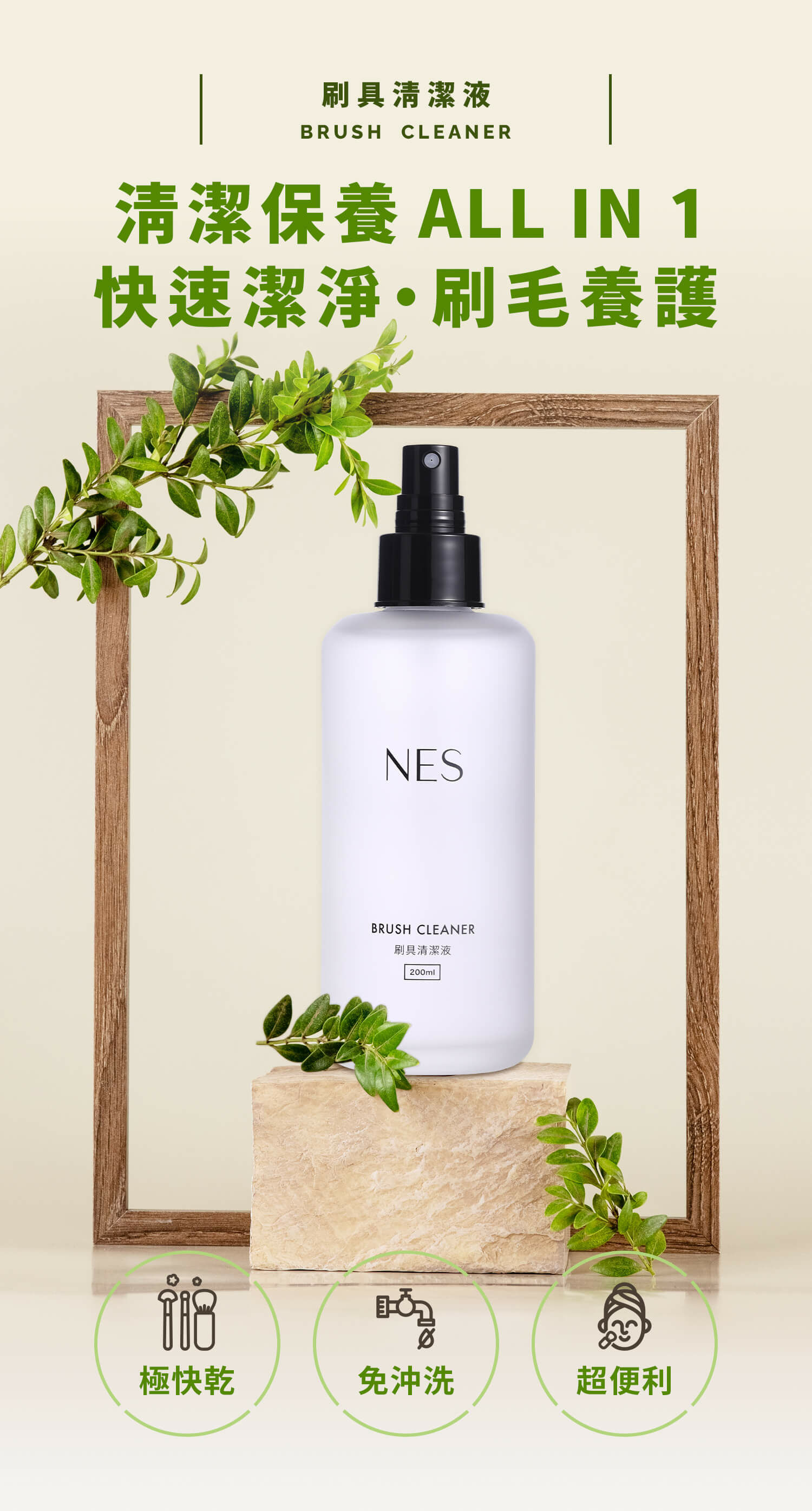 【恩藝偲 NES cosmetics】不暈不塌極細防水睫毛膏+睫毛膏刷 + 刷具清潔液200ml